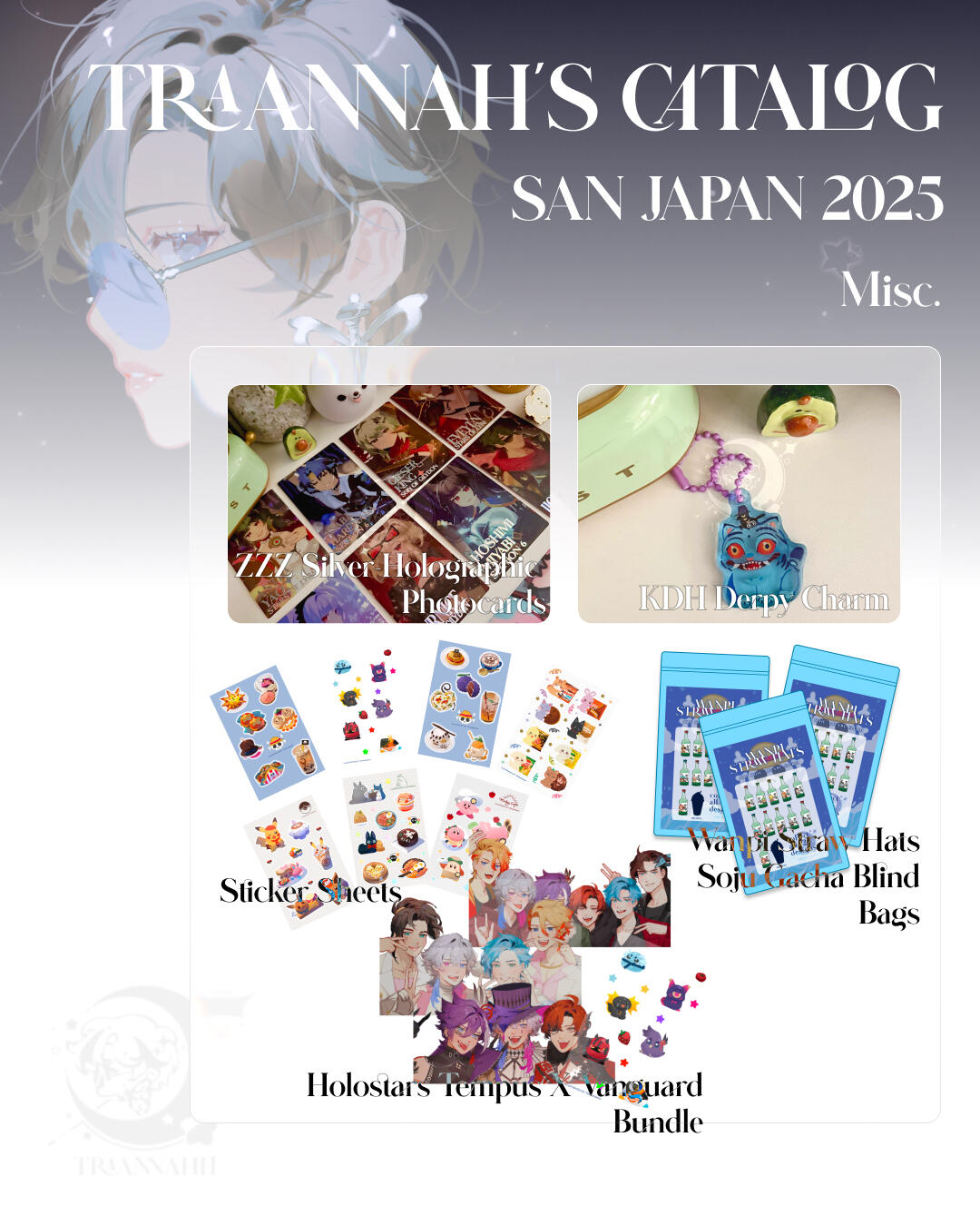 GENERAL》All rules listed applies both commissions and raffle prizes.》 If you are not comfortable with my Terms Of Service and/or are not willing to agree to the conditions, you may not request a commission. Failure to comply will result in a blacklist.》By commissioning me, you agree that your artwork will be delivered digitally. You will not be receiving a physical product.》Under any circumstance, I do NOT allow the rights to have any mint/sell my artwork for NFT. This includes any form of blockchains, meta-data, AI art, crypto etc. Any of these involved will be revoke immediately and permanently banned from future commissions/projects.》I have the right to refuse any commission I don’t feel comfortable or capable of doing.》Please do not edit or change the original artwork in any way without my permission, including color-changing, removing images, removing my watermark, and more.》Do not claim the commission work as your own.》Remember to credit me upon reuploading platforms such as Twitch, Twitter, Toyhouse, etc. (@traannahh)》I retain all rights to post my art on any social media or portfolio (unless requested not to by your prior/NDA request)》If you have any questions feel free to ask through Email or Twitter DMs.》For businesses, agencies, organizations, management, and groups, please contact me to arrange in more detail.CONTENT》I have the right to refuse projects/requests according to my capabilities. Some of the content I will not be comfortable with representing include:✗ Fully mech/robotic